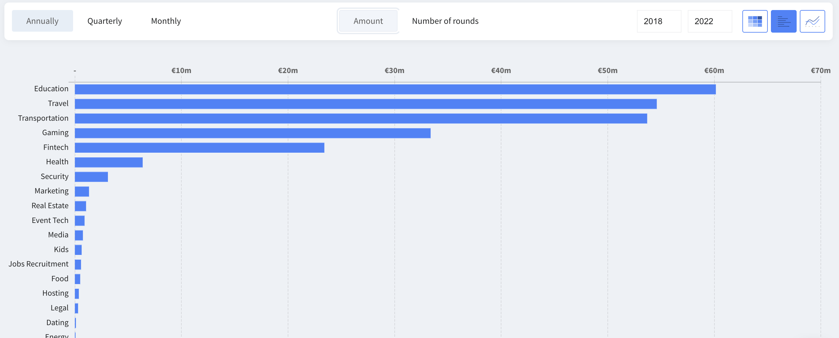 However, it is in edtech that Cypriot startups have raised the most funding between 2018 and 2022 with a total amount of €60.1M. Tourism is one of Cyprus’ most resilient and strong economic sectors. The island has all the prerequisites to further develop this industry and offers great potential for investments in niche areas such as Health & Wellness, Sports, Luxury and Lifestyle.