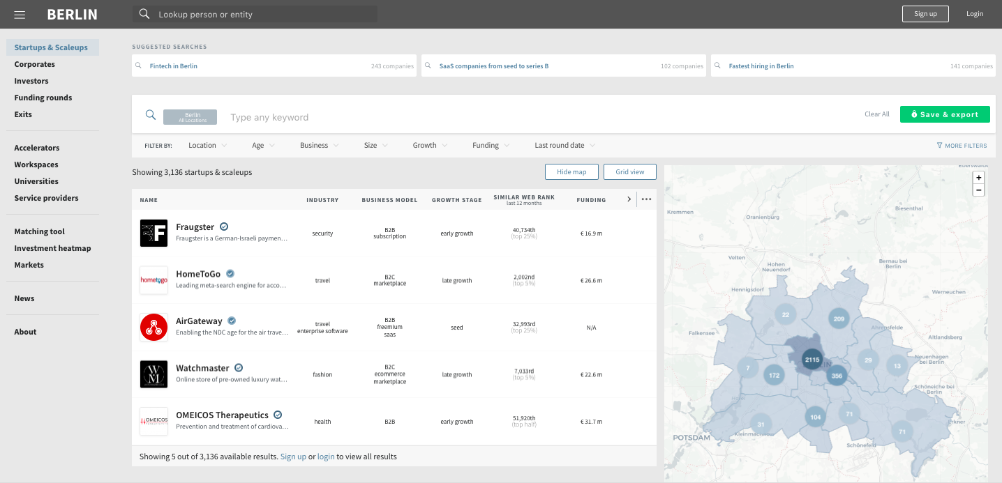 Concurrent with the report, we released version 1.0 of a new open-data platform to support of Berlin’s tech community. It’s already Berlin’s most comprehensive tech ecosystem database, providing hand-curated information on Berlin-based startups (3,100+), investors (650+), corporates (200+) and other entities. Free access is made possible by support from the same partners: HV Ventures, Lakestar, Point Nine, Target Global and Hering Schuppener.