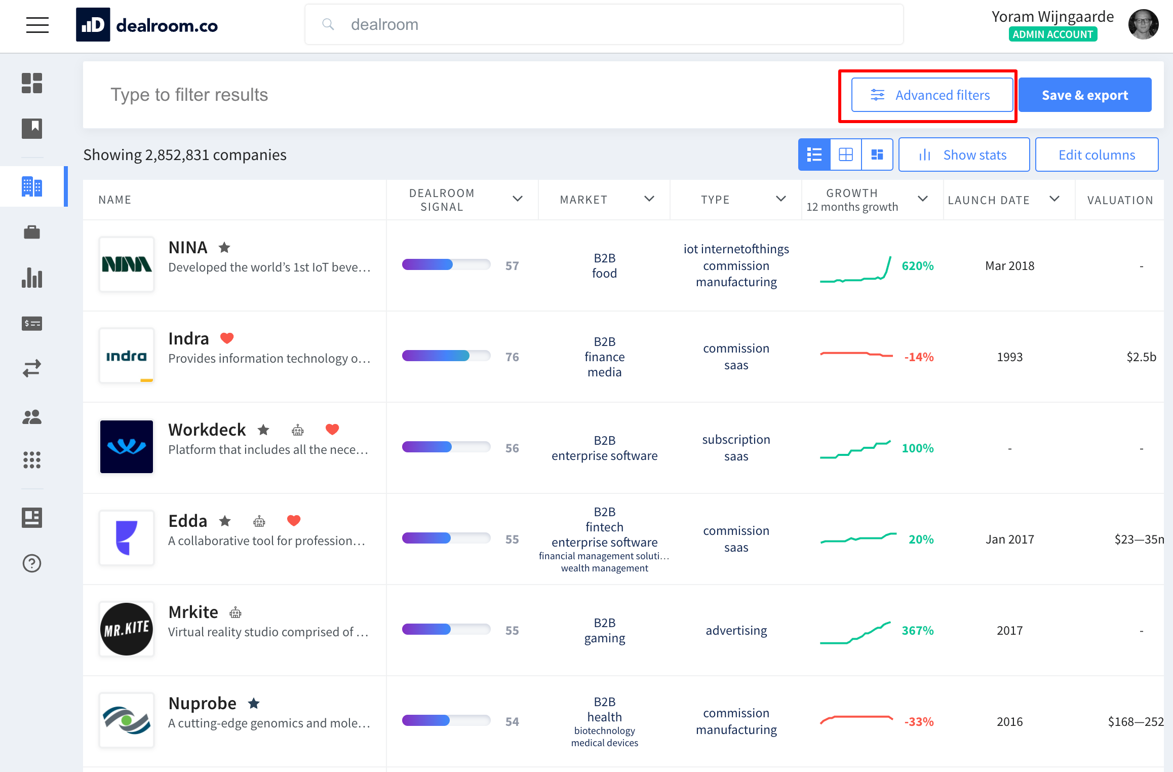 A good way to start using these filters on the platform is by visiting the platform, going to the companies table (app.dealroom.co/companies) and clicking on “Advanced Filters”. You’ll need a Premium or Premium Trial account for this. Just open the chat (bottom right) or contact us if you would like to set this up (best if you create a free account first).