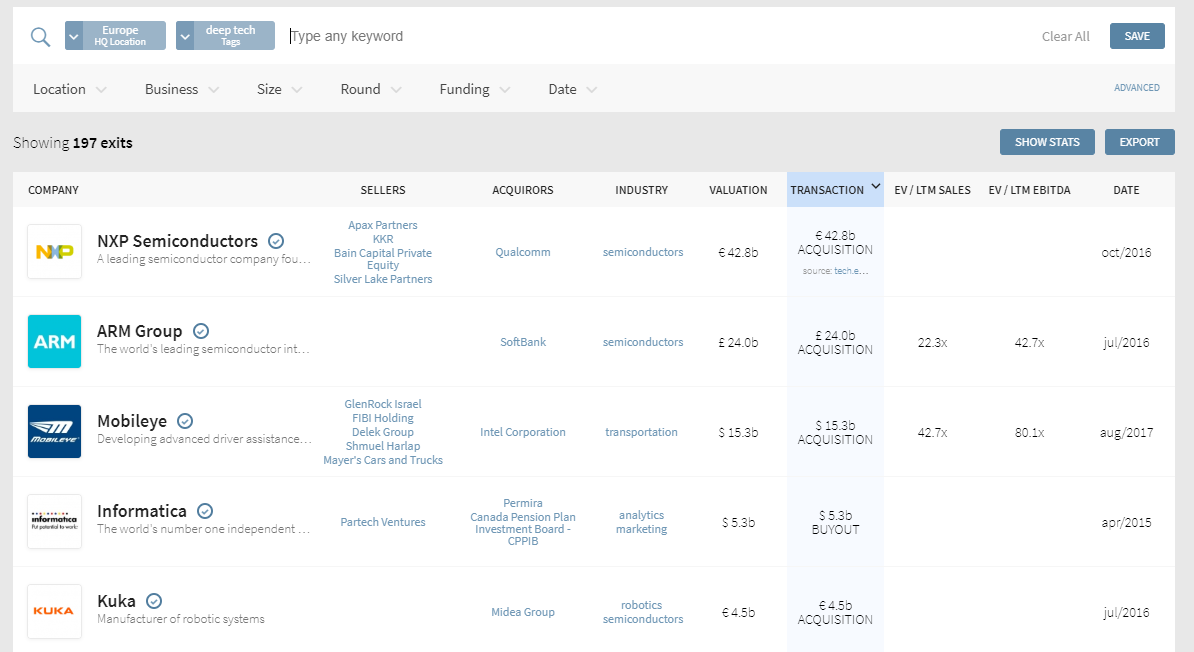 Europe and Israel have already generated several high profile Deep Tech exits, as the below data table shows: