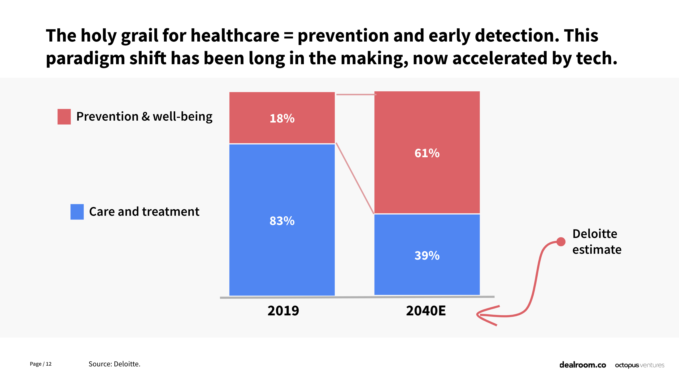 Entrepreneurial and investor focus is addressing all four areas. The holy grail for healthcare is prevention and early detection. This paradigm shift has been long in the making, but accelerated by tech and investment, it’s now well underway.
