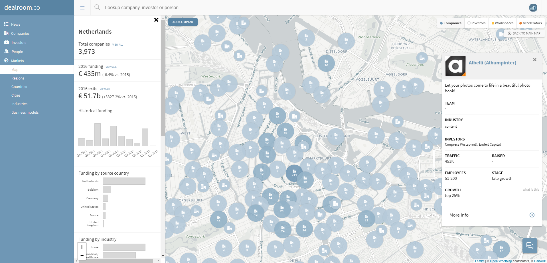 The way Dealroom collects, analyses and visualises geospatial data about startups, VCs and ecosystems is constantly being improved. For instance, we continue adding new features and better design to the geographical maps. The reason? Maps are very visual and users like them, especially at first sight, but we want to make sure they are also highly usable. The Dealroom map is not only available on our own website, but also used by various third-party sites as Ecosystem Solution.