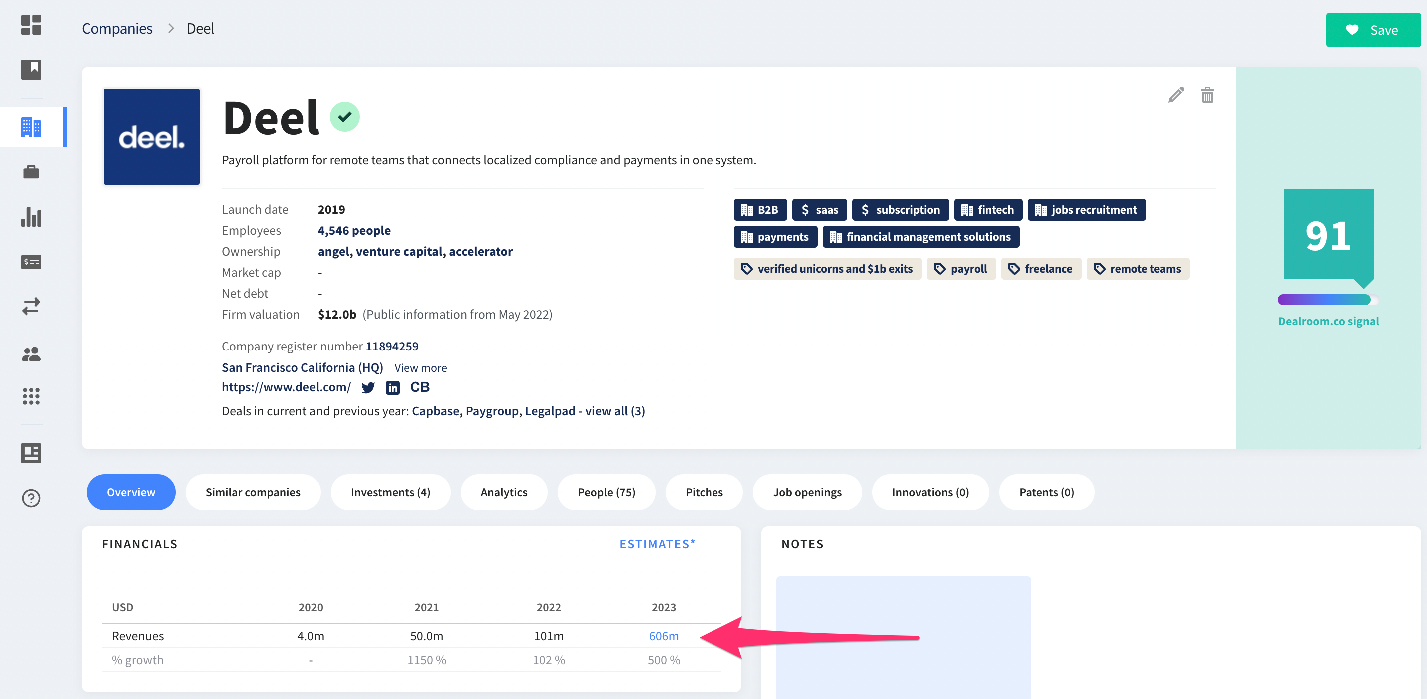 You can now find estimates highlighted in blue in the platform among the company’s actual financials in black. Access all the startups that currently have revenue data here.