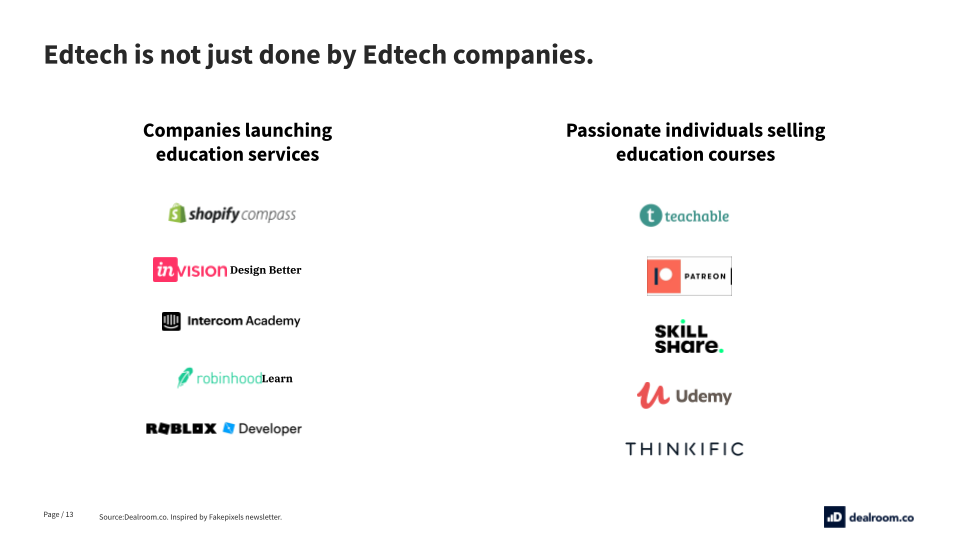 Education is no longer delivered by educational institutions alone. All sorts of companies offer learning through real-life encounters. You don’t have to take a formal course on how to start and scale an e-commerce business, just go to Shopify Compass and learn by guided-doing.