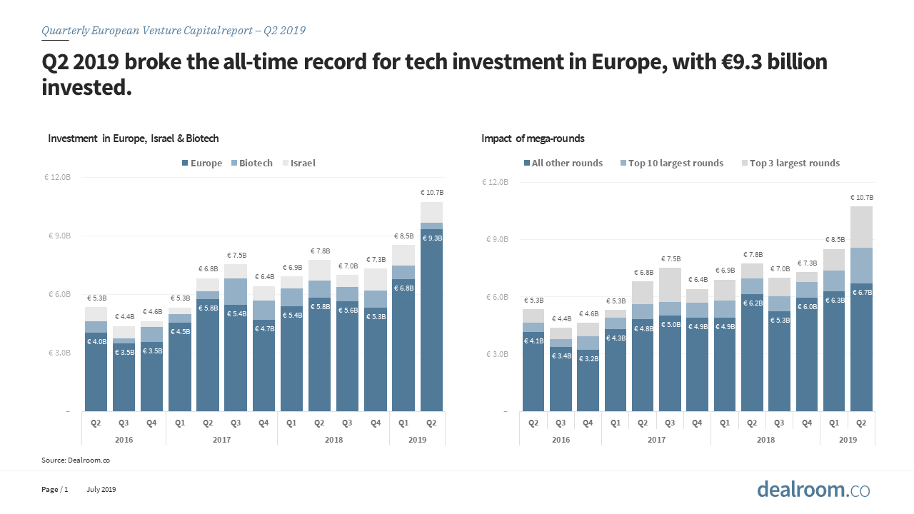 With €9.3 billion invested, Q2 2019 broke the all-time record for tech investment in Europe